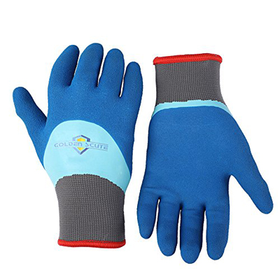 Seamless Knit Polyester Gloves with Acrylic Terry Cloth Lining and Double Dipped Latex Coated